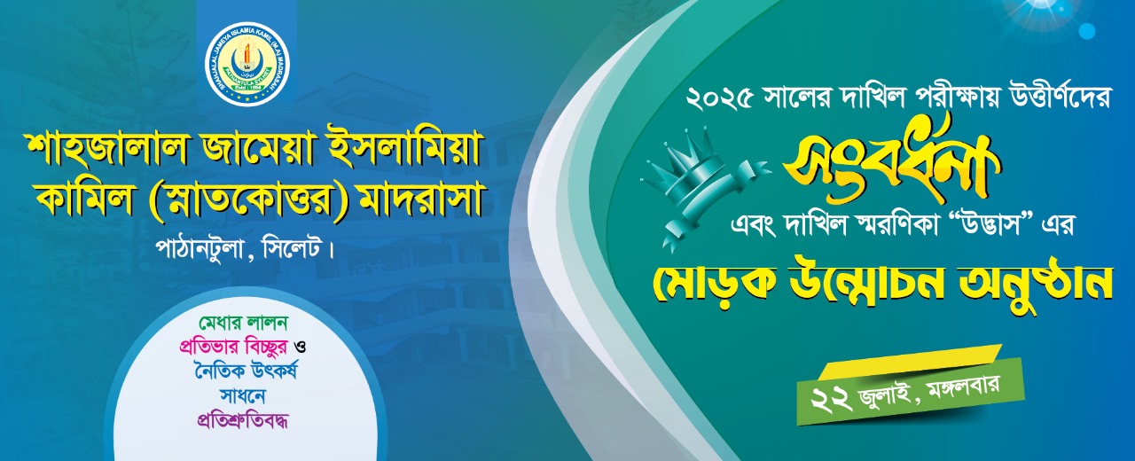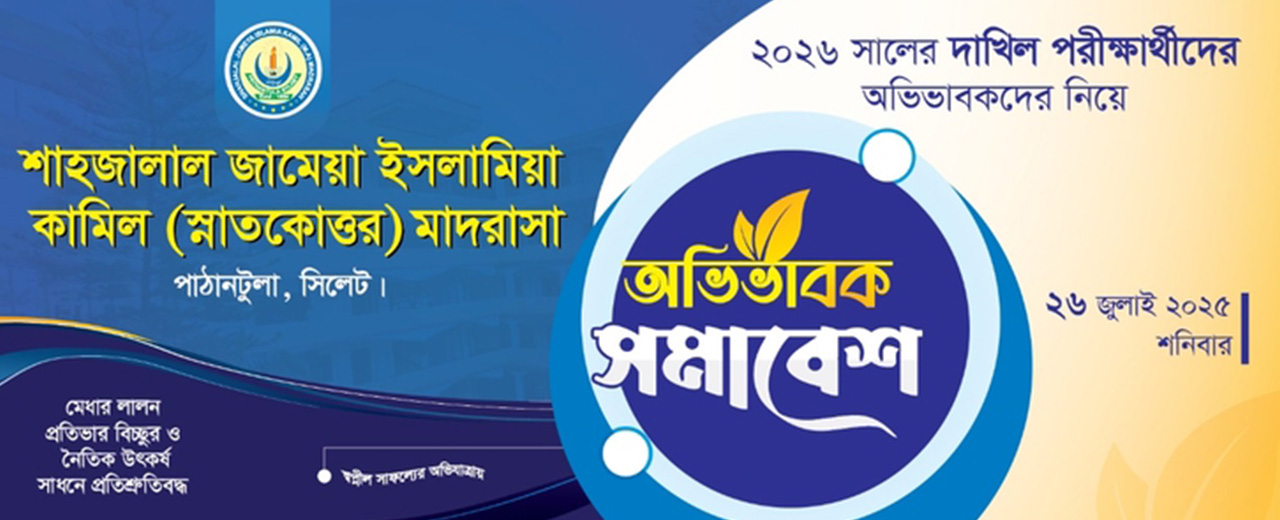 সম্মানিত অভিভাবকবৃন্দ, আগামী ২৬ জুলাই ২০২৫ ঈসায়ী রোজ শনিবার জামেয়া হলরুমে ২০২৬ সালের দাখিল পরীক্ষার্থীদের অভিভাবকদের নিয়ে এক